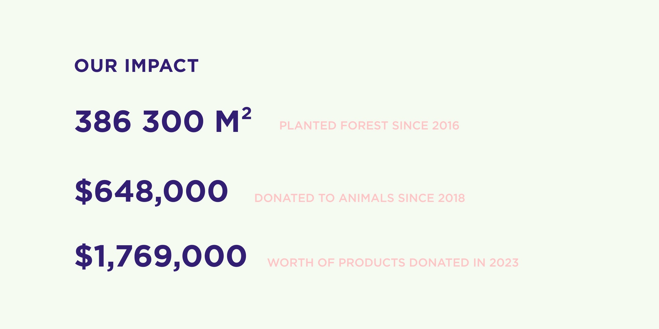 Each year, we calculate the total CO2 emissions from our packaging and operations, and by the end of the year, we offset an equal amount.